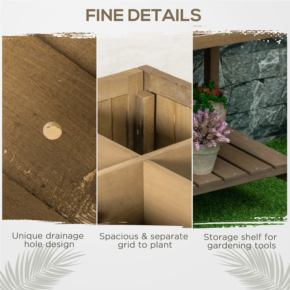 Outsunny Wooden Herb Planter Raised Bed Container Garden Plant Stand Bed 8 Boxes 110L x 46W x 76Hcm Brown