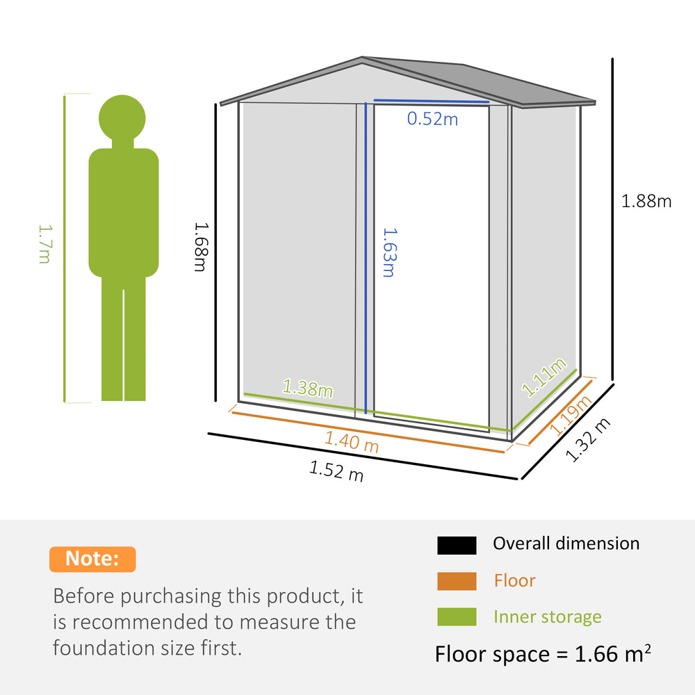 Outsunny Garden Metal Tool Storage Shed with Sliding Door, Sloped Roof and Floor Foundation, 152 x 132 x 188cm, Green