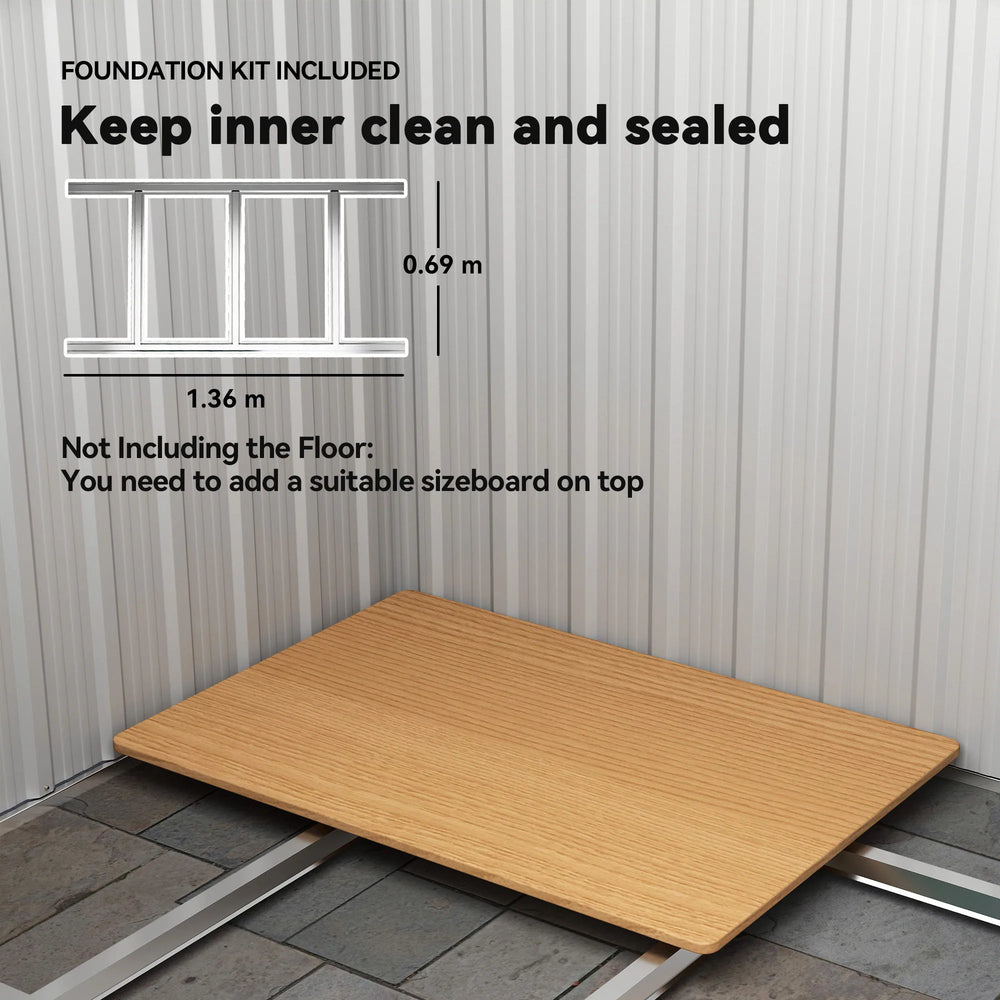 Essential outdoor shed with a sheltered roof to keep safe. This Outsunny galvanised shed is a must for every home. Made from steel, the shell is strong and tough - built with a sliding door to open and access inside easily. The built-in ventilation slots allow air inside, keeping contents aerated and fresh. A sloping roof helps prevent rainwater and other liquids build up, so nothing leaks through inside. Foundation kit included for shed to stand level on the ground.
