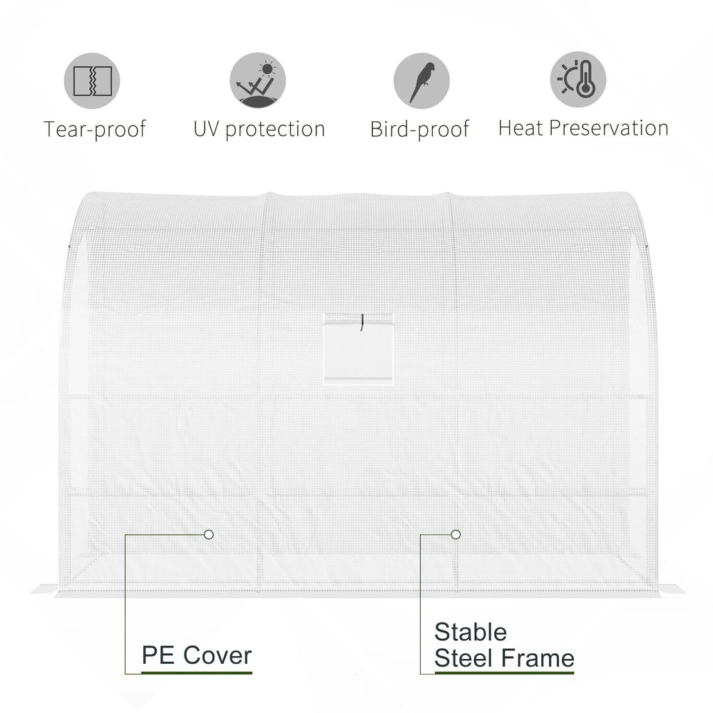 Outsunny Outdoor Walk-In Greenhouse, Plant Nursery with Zippered Doors, PE Cover and 3-Tier Shelves, White, 300 x 150 x 213 cm