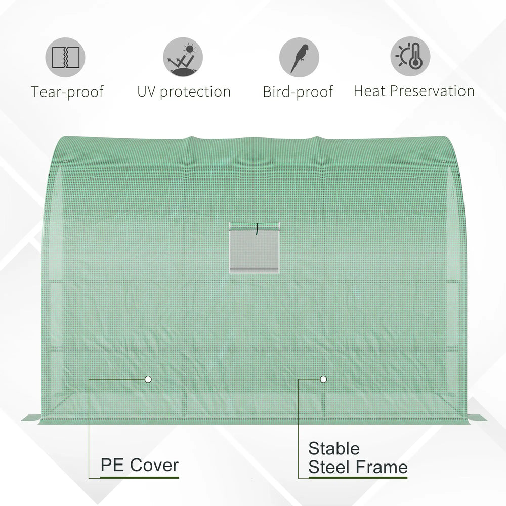 This Outsunny walk-in garden greenhouse is suitable for home gardening. The plant nursery offers all the protection your plants need to thrive. Includes a frame and PE cover that will keep your plants and vegetables safe from the elements. The windows have interior netting to provide ventilation throughout the plant nursery. Our Outsunny greenhouse will keep your plants happy and healthy throughout the year.