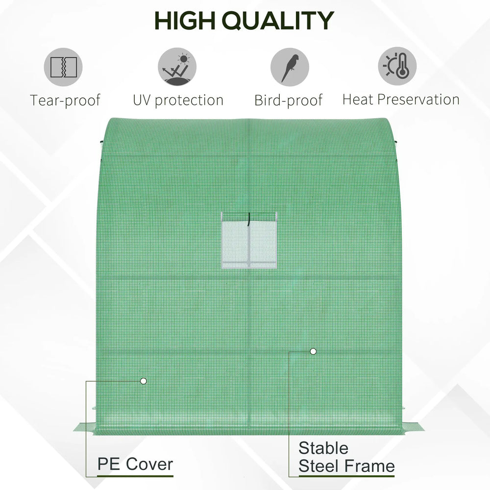 This Outsunny walk-in garden greenhouse is suitable for home gardening. The plant nursery offers all the protection your plants need to thrive. Includes a frame and PE cover that will keep your plants and vegetables safe from the elements. The windows have interior netting to provide ventilation throughout the plant nursery. Our Outsunny greenhouse will keep your plants happy and healthy throughout the year.