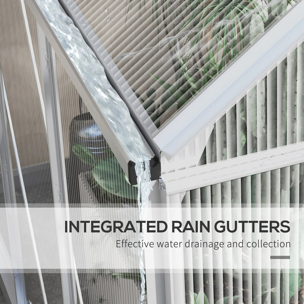 - Polycarbonate panels: Large greenhouse protects inside crops from water, wind and UV from direct sunlight, giving them better growing conditions. Integrated rain gutters on the bottom are effective for water drainage and collection.