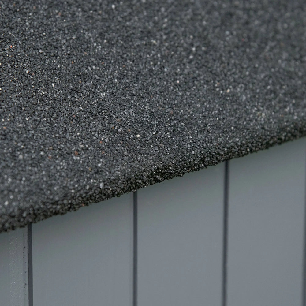 - Asphalt roof covering: Extra protection, helps prevent water leaking through to inside this garden tool shed.
