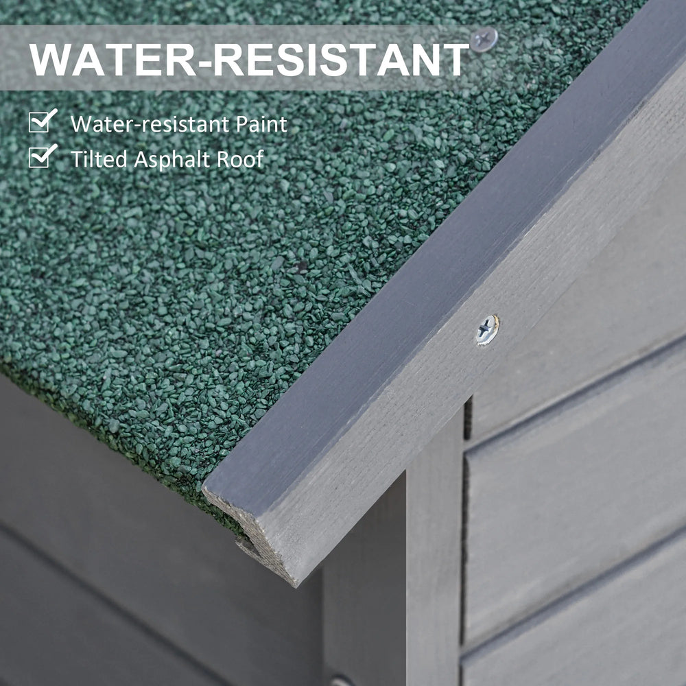 - Asphalt-covered roof: Slanted with felt helps prevent water build-up, keeping inside protected and dry.