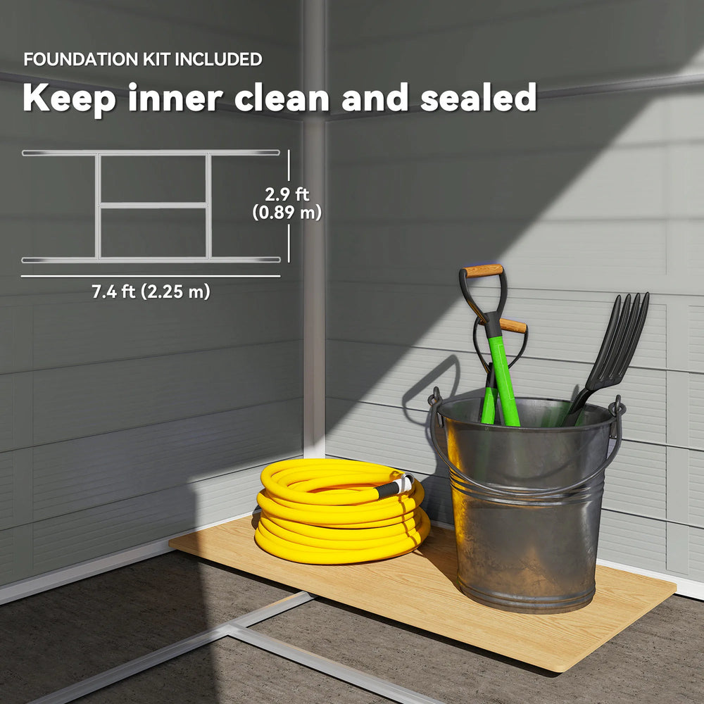 Outsunny 7.9ft x 6.2ft Aluminium Frame Rust Resistance Waterproof Shed, with Galvanised Foundation - Light Grey