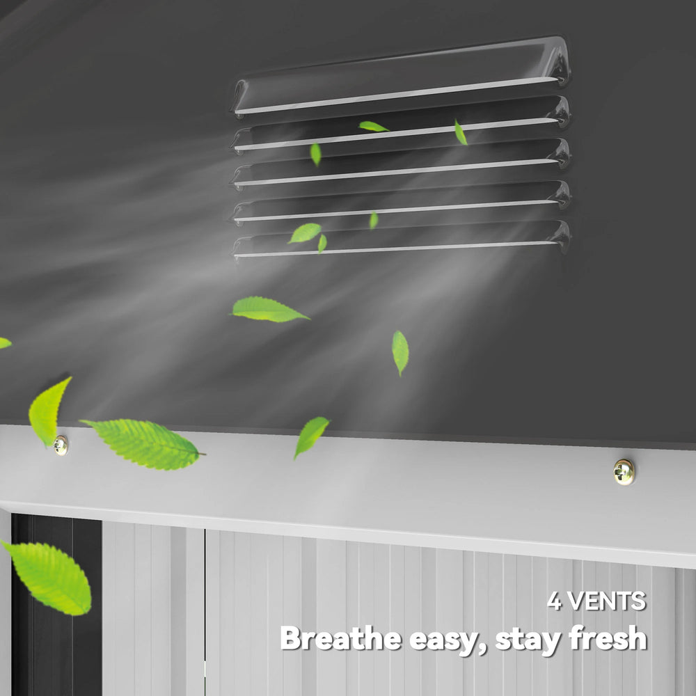 - Ventilation slots: The small shed is equipped with four vents, two on the front and two on the back, promoting air circulation to prevent moisture and mildew buildup.
