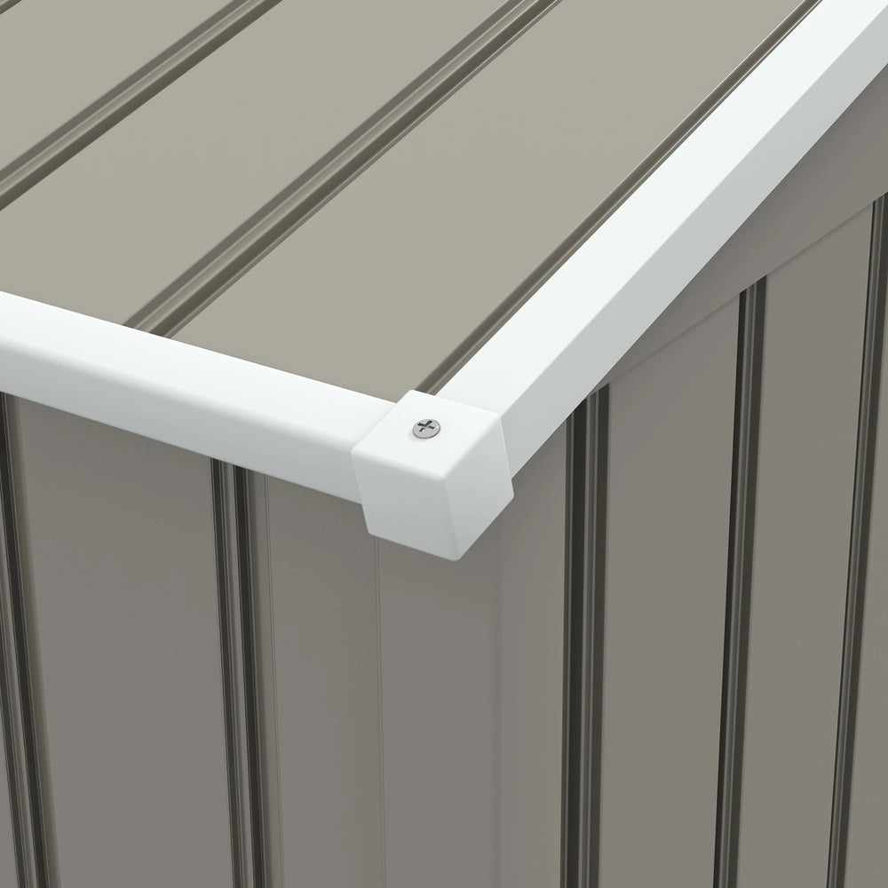- Galvanised steel shell: A tough piece, suitable for use all-year round. Metal garden shed is resistant to rusting.
