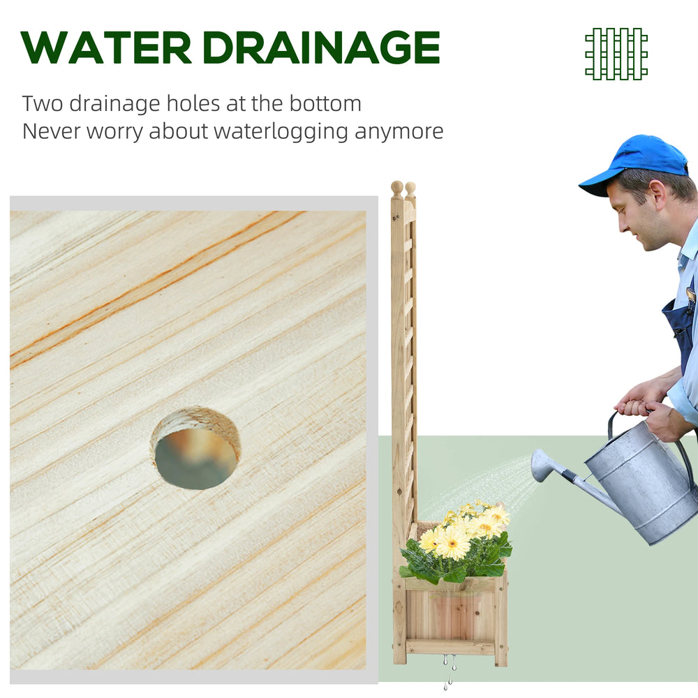 Outsunny Garden Planters with Trellis for Climbing Vines, Wood Raised Beds for Garden, Flower Pot, Indoor Outdoor, Natural