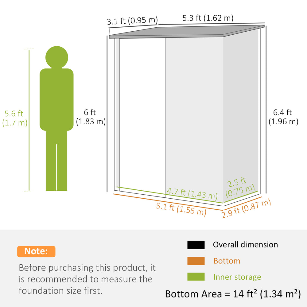 - 5.3 x 3.1ft size: Metal shed has open and spacious inside for storing tools, equipment and other garden/outdoor pieces.