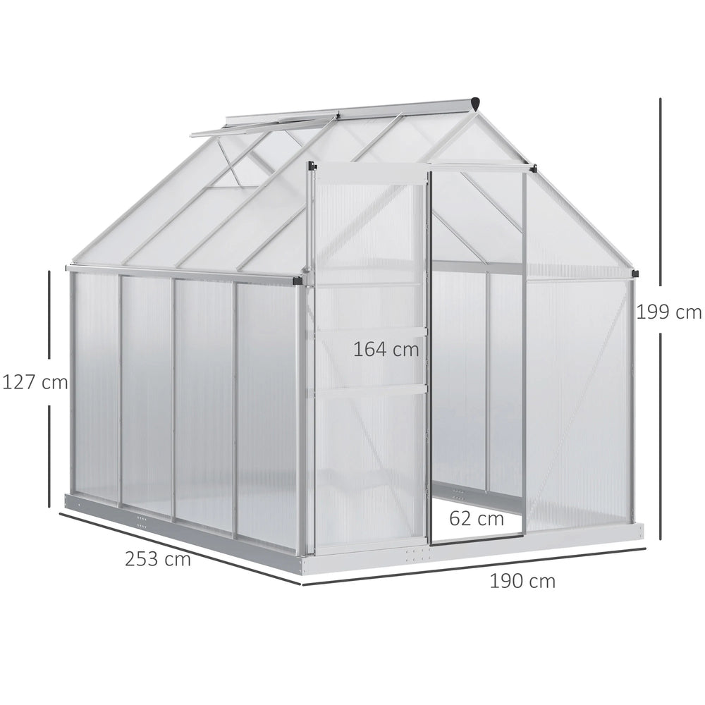 Outsunny 190 x 253 cm Walk-In Polycarbonate Greenhouse - Silver-Tone
