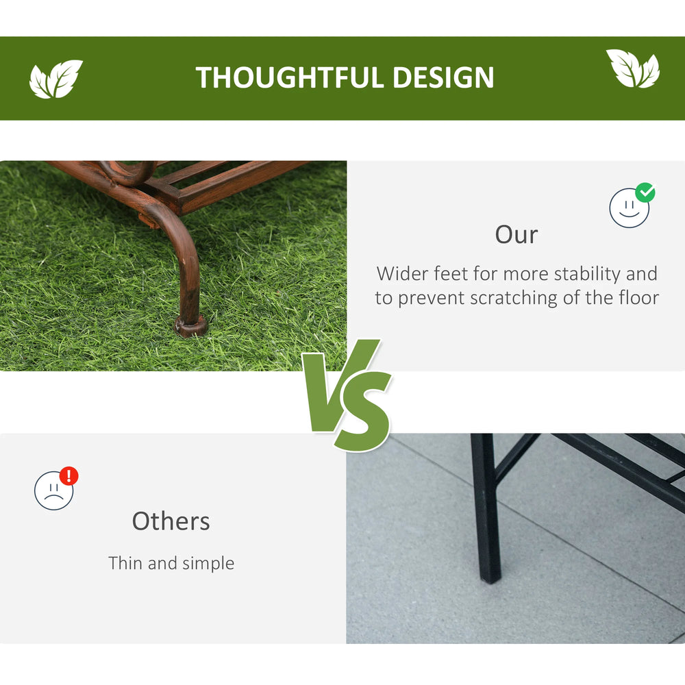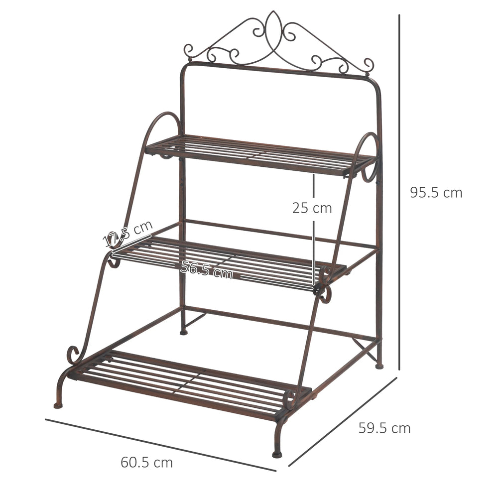 Add style and storage to your home with this tall plant stand from Outsunny. Our 3-tiered flower stand is built with a gorgeous sturdy metal scroll work frame, the plant shelf brings a touch of elegance to your porch, patio, indoor space, or wherever you want to utilize it. This tiered plant stand is perfect for holding everything from plants to books to decorative candles. With this corner plant stand, you can easily keep your surrounding area neat, tidy, and stylish!