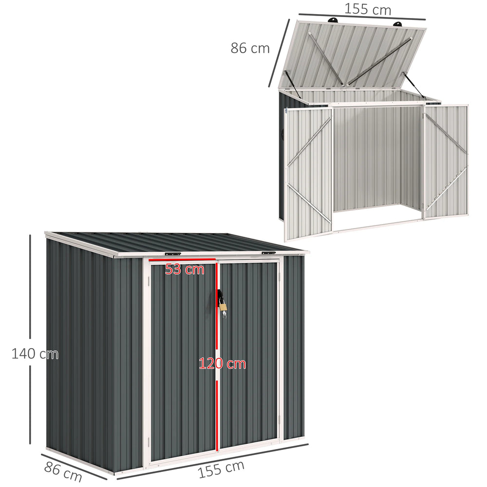 Outsunny 5ft x 3ft Garden 2-Bin Steel Storage Shed, Double Rubbish Storage Shed, Hide Dustbin w/ Locking Doors and Openable Lid