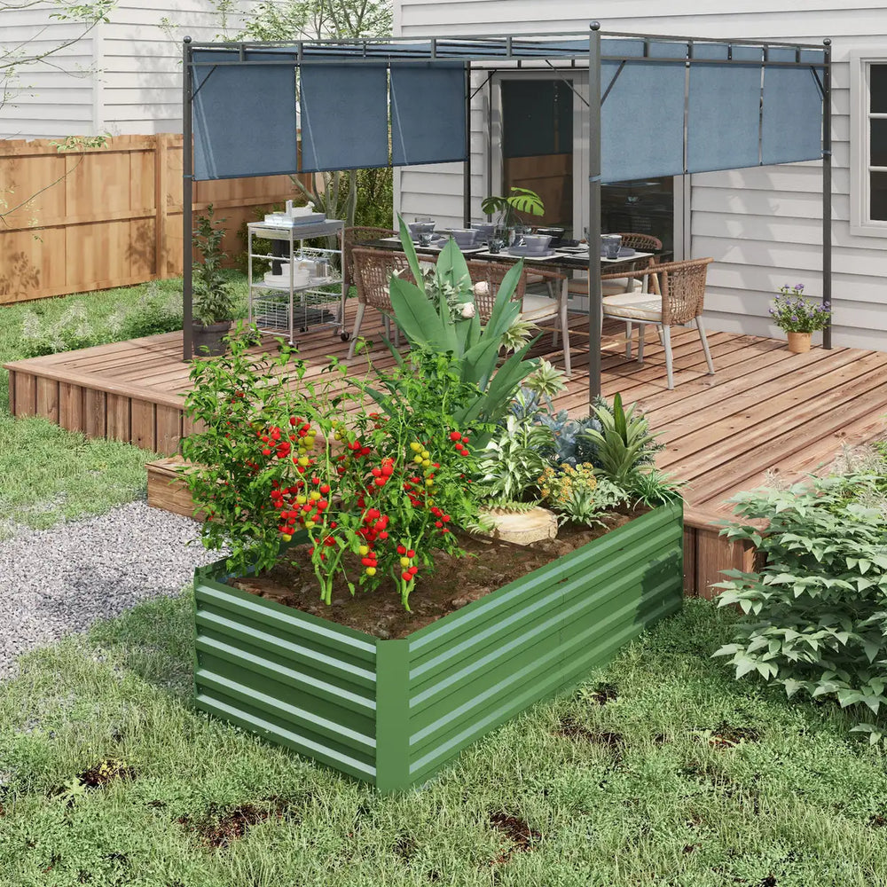 Outsunny Raised Beds for Garden, Galvanised Steel Outdoor Planters with Multi-reinforced Rods, 180 x 90 x 59 cm, Green