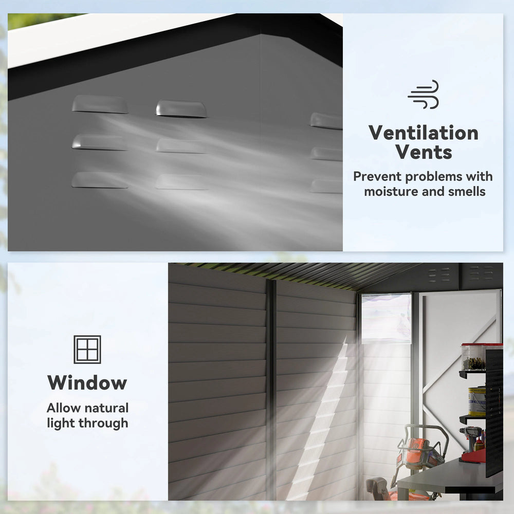 - 8.3 x 5.9ft inner size: Generous size, this metal garden shed offers plenty of storage room for keeping garden tools and equipment together.