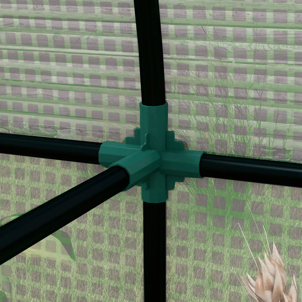 Home growing wherever with this Outsunny greenhouse. This Outsunny 94 x 185cm greenhouse comes in a two-room design, so you can separate plants to how you want. With a steel frame, the core is sturdy, with four guy ropes and four ground stakes included to pin into ground. The three-layer plastic cover creates a protective shield for inside - plants grow with cover against wind and rain. 10cm cover edges to bury into soil for extra stability.