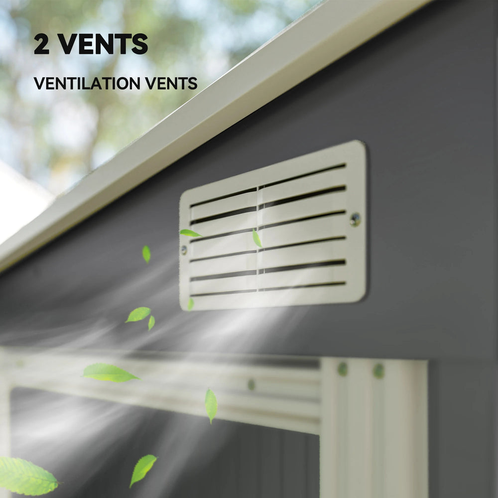 - Two ventilation slots: Brings air inside metal garden shed, helps keep it fresh.
