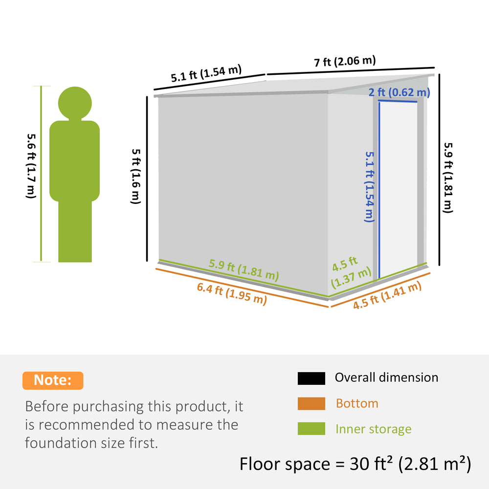 - 7 x 5ft outdoor storage shed: Store garden tools and equipment. Large enough for bikes or long-handled rakes and shovels.