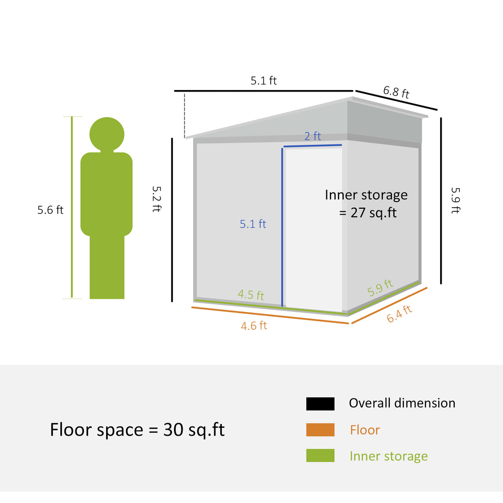 - 7 x 5ft outdoor storage shed: Store garden tools and equipment. Large enough for bikes or long-handled rakes and shovels.
