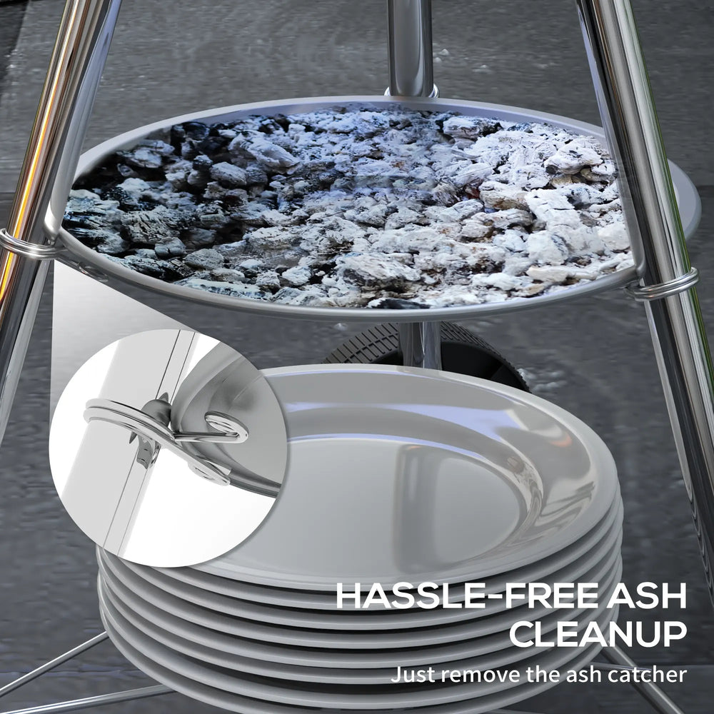 - EASY TO CLEAN: 'One touch' system empties ash and debris into the ask catcher of the portable bbq for quick removal of waste.