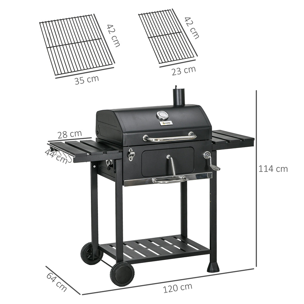 Outsunny Adjustable Charcoal Pan BBQ, with Thermometer and Warming Rack