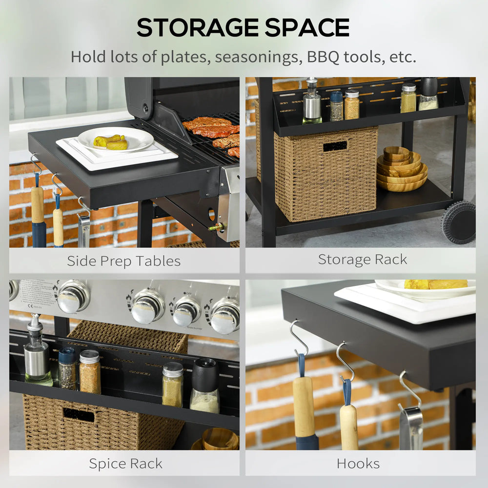 - Multiple storage: Storage rack beside and underneath the bbq trolley, with front spice rack and side hooks.