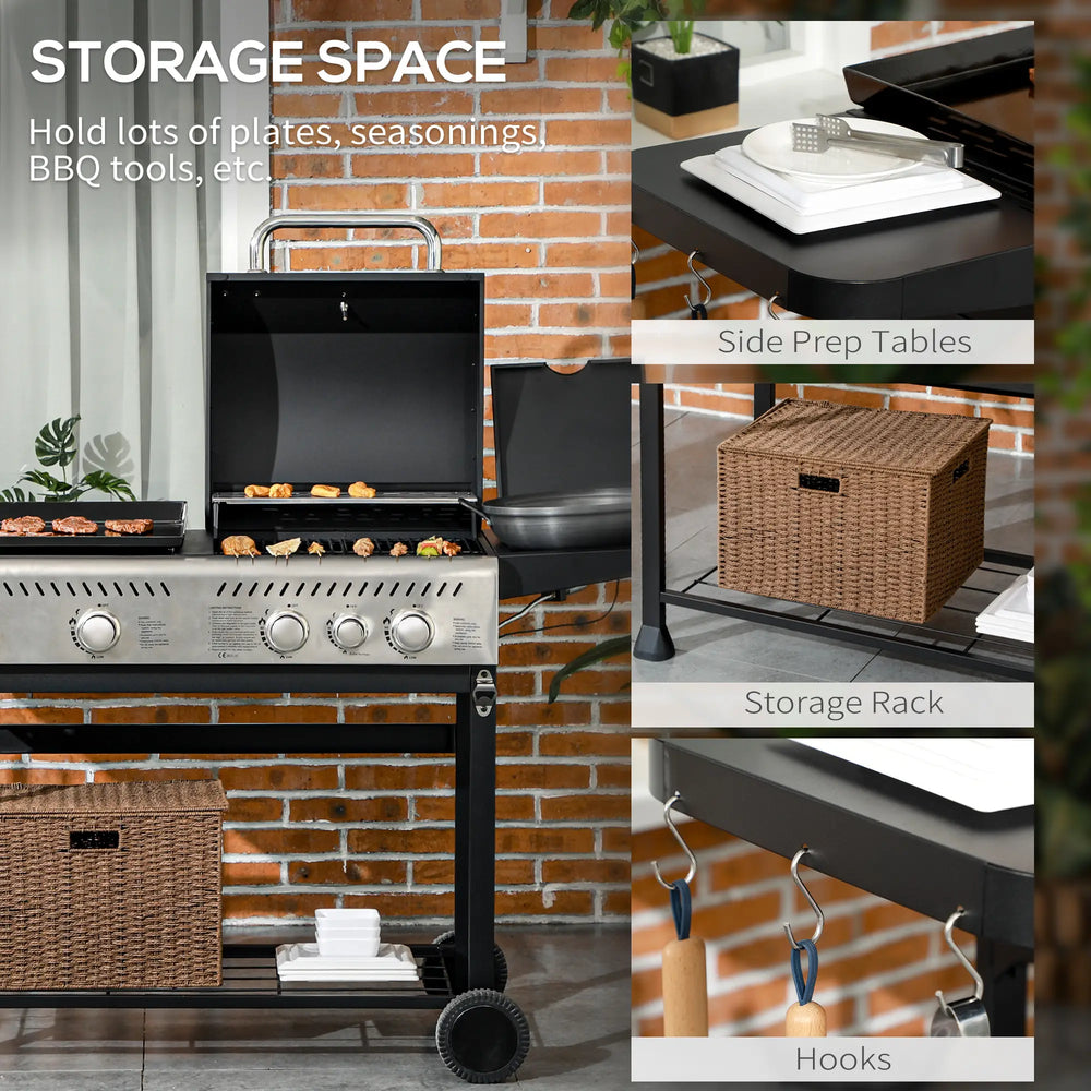 - Multiple storage: Keep essentials within reach on bbq trolley, with racks beside and underneath the grill and tool hooks.