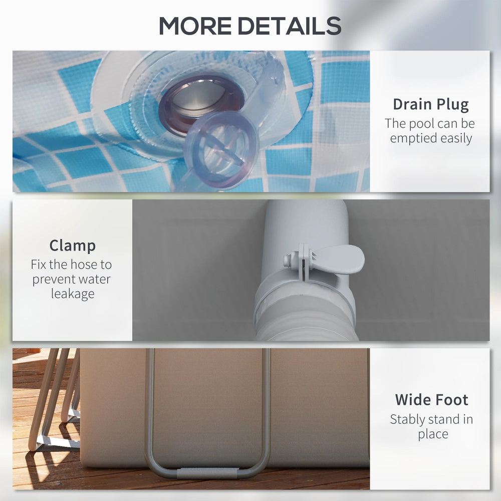 Fun for all this summer - say hello to this Outsunny above ground pool. The 207 x 400cm size holds up to five people, so you can bring your friends and have fun splashing outdoors in the sun. A powder coated steel frame means a strong core, fitted with a thick PVC pool bag to hold the water weight, and you, effortlessly. Comes with a 2006L/h filter pump for continuous clean water supply, complete with an anti-slip ladder to enter and leave portable pool safely.