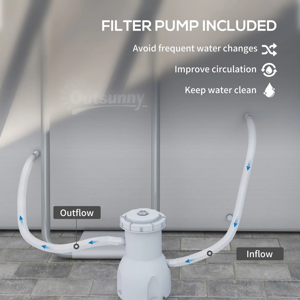 Outsunny Rectangle Steel Frame Swimming Pool with Ladder and Pump - Grey