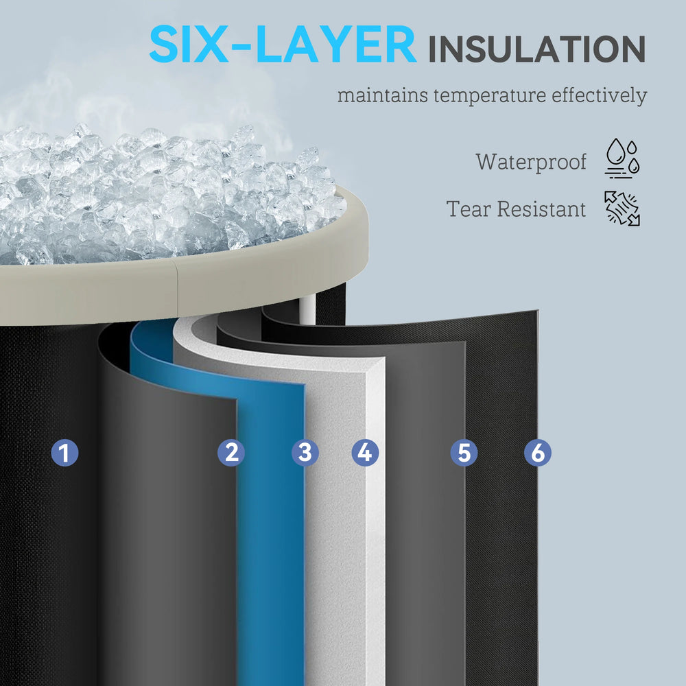 - Two covers: A protective cover keeps leaves and debris out, while the inflatable cover maintains the optimum temperature in your cold plunge tub.