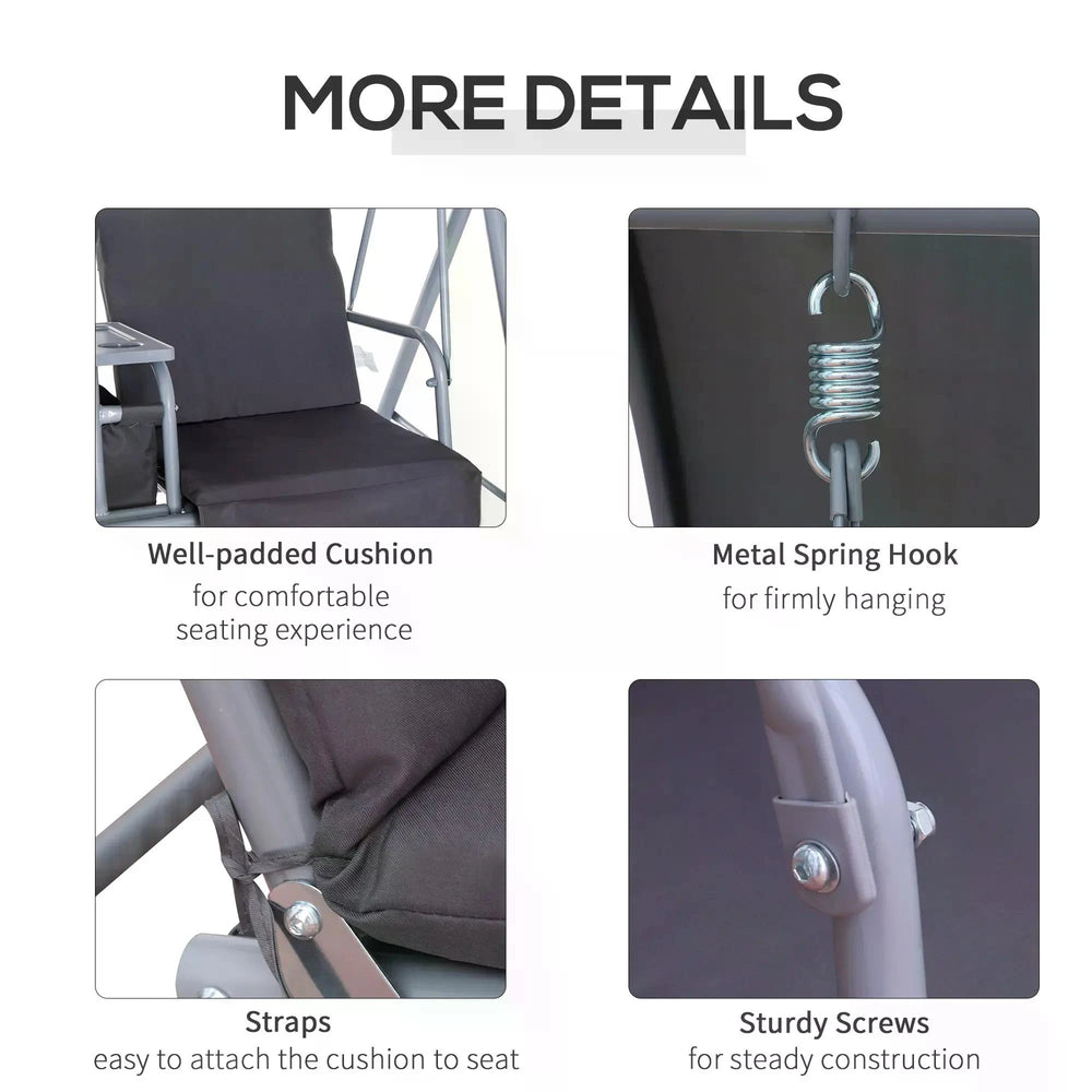 Outsunny Steel Frame 2-Seater Swing Chair w/ Table Grey