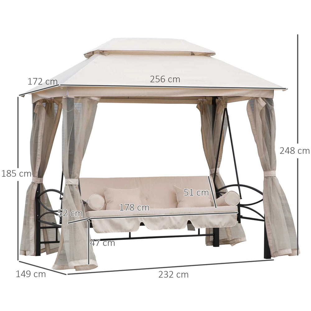Outsunny 2-in-1 Convertible Gazebo Swing Chair Bed W/Netting, 245Lx165Wx243H cm-Beige/Black