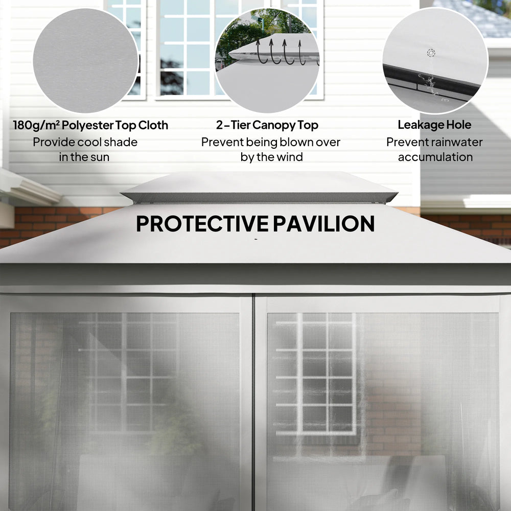 - The large size gazebo with water-resistant 2-tier canopy top and removable zippered mesh curtains helps create a comfortable protected space
