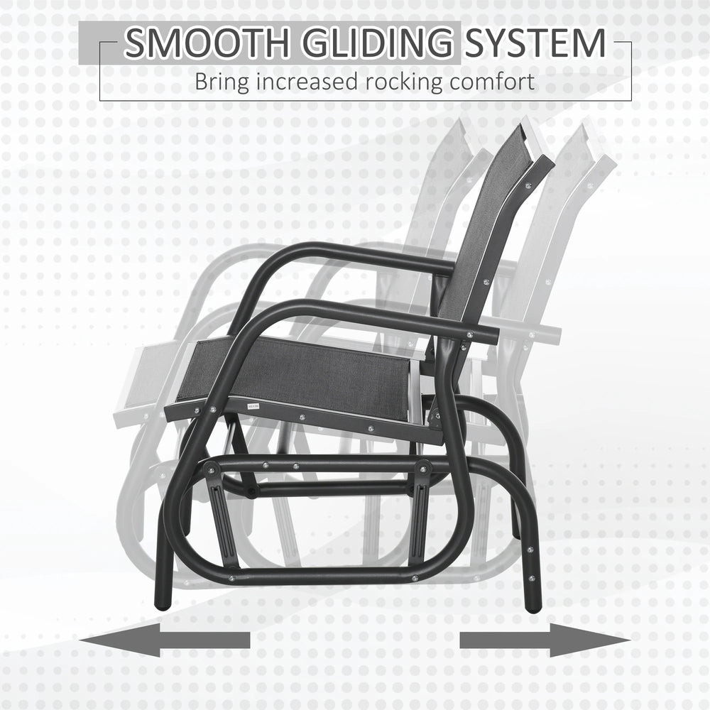 Outsunny Outdoor Garden Glider Chair, Metal Frame Single Armchair Swing Seater w/ Breath Mesh Fabric Seat, Curved Backrest, Armrests, for Living Room, Patio, Porch, Dark Grey