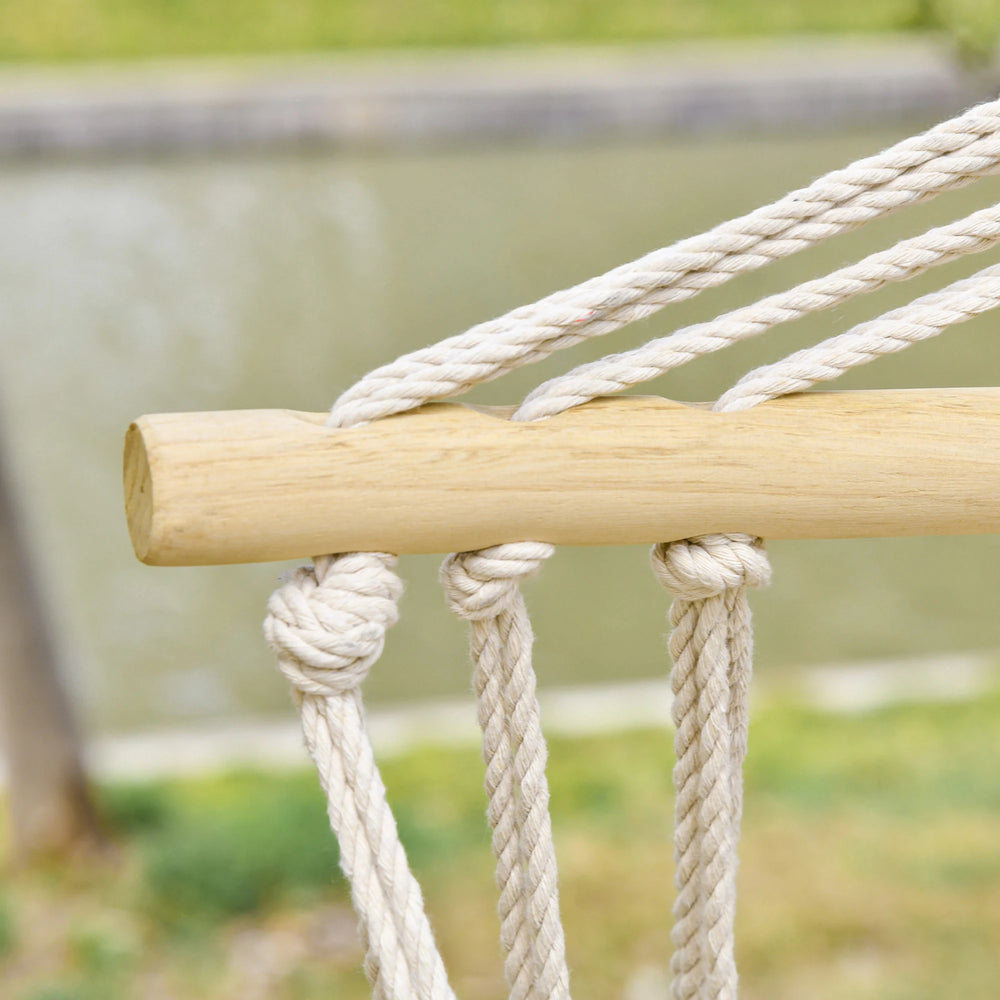 Cocoon yourself in comfort, creating the hideaway place outdoors with this garden hammock chair from Outsunny. With a rigid structure, the hanging chair can handle up to 100kg and is formed from thick rope for safety, with the seat securely attached for full support. And the hanging seat is finished with wooden armrests and a wooden bar on the top to keep the balance central and stable. A spot you'll love sinking into for a long afternoon under the sun.