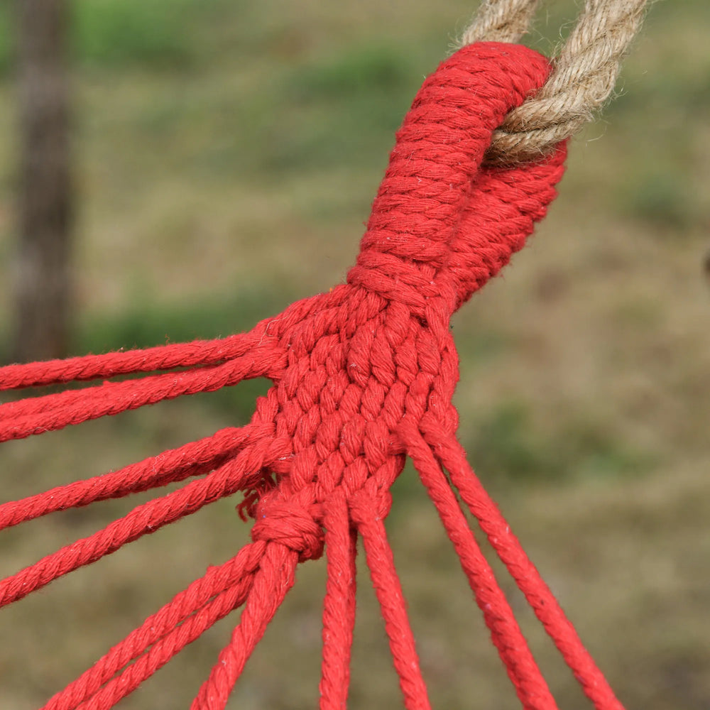 - DURABLE MATERIAL: Comprised of polyester cotton fabric with strong hanging straps, this heavy-duty indoor hammock is quality you can trust, weather-resistant, and well-made. Added elegance with hanging tassel design