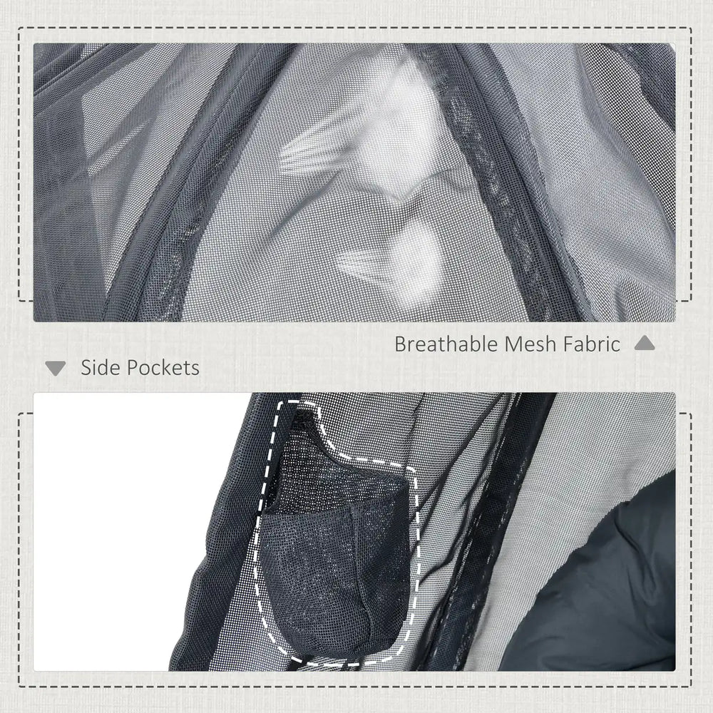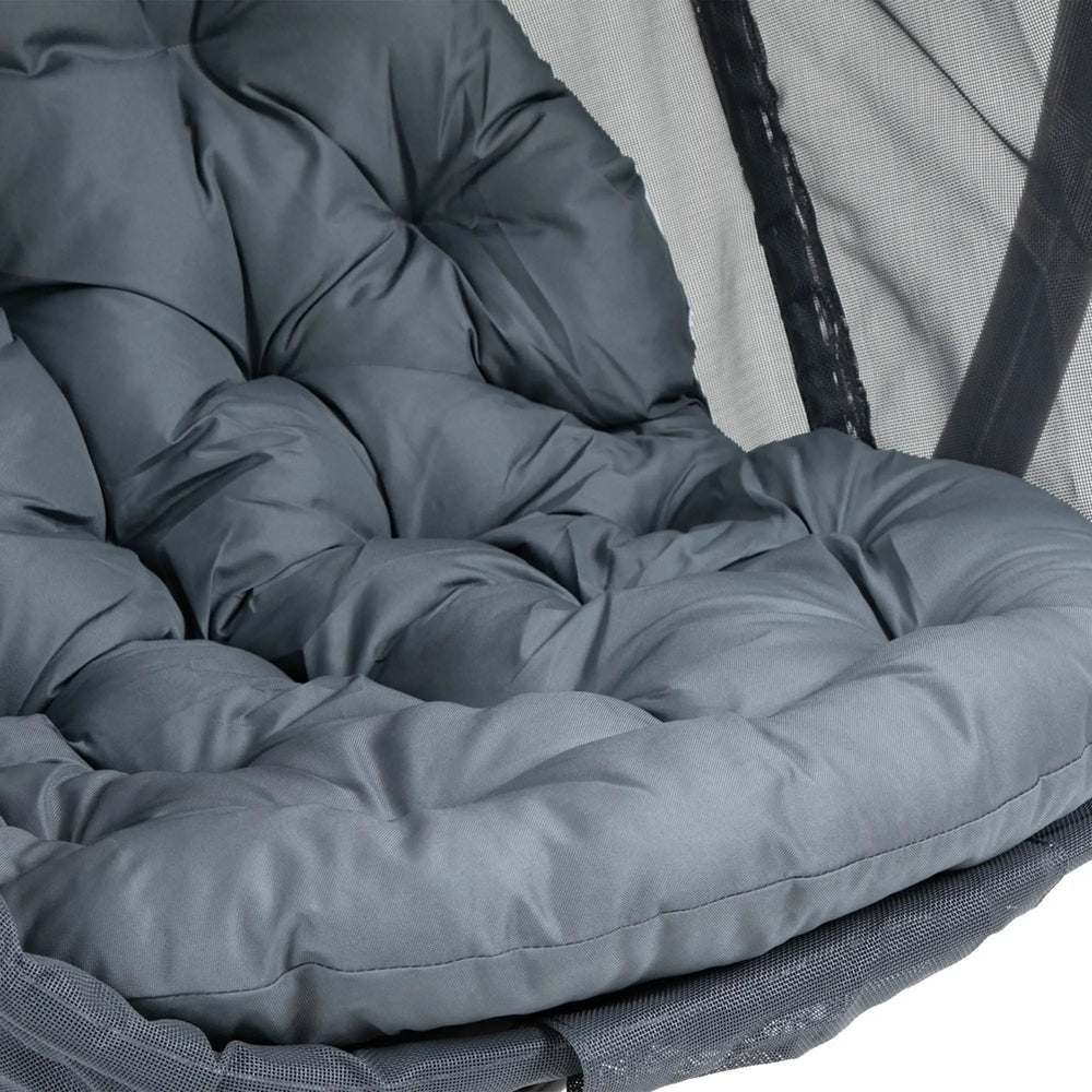 Outsunny Hanging Egg Chair, Folding Texteline Swing Hammock with Side Pocket, Cushion and Stand for Indoor Outdoor, Patio Garden Furniture, Grey