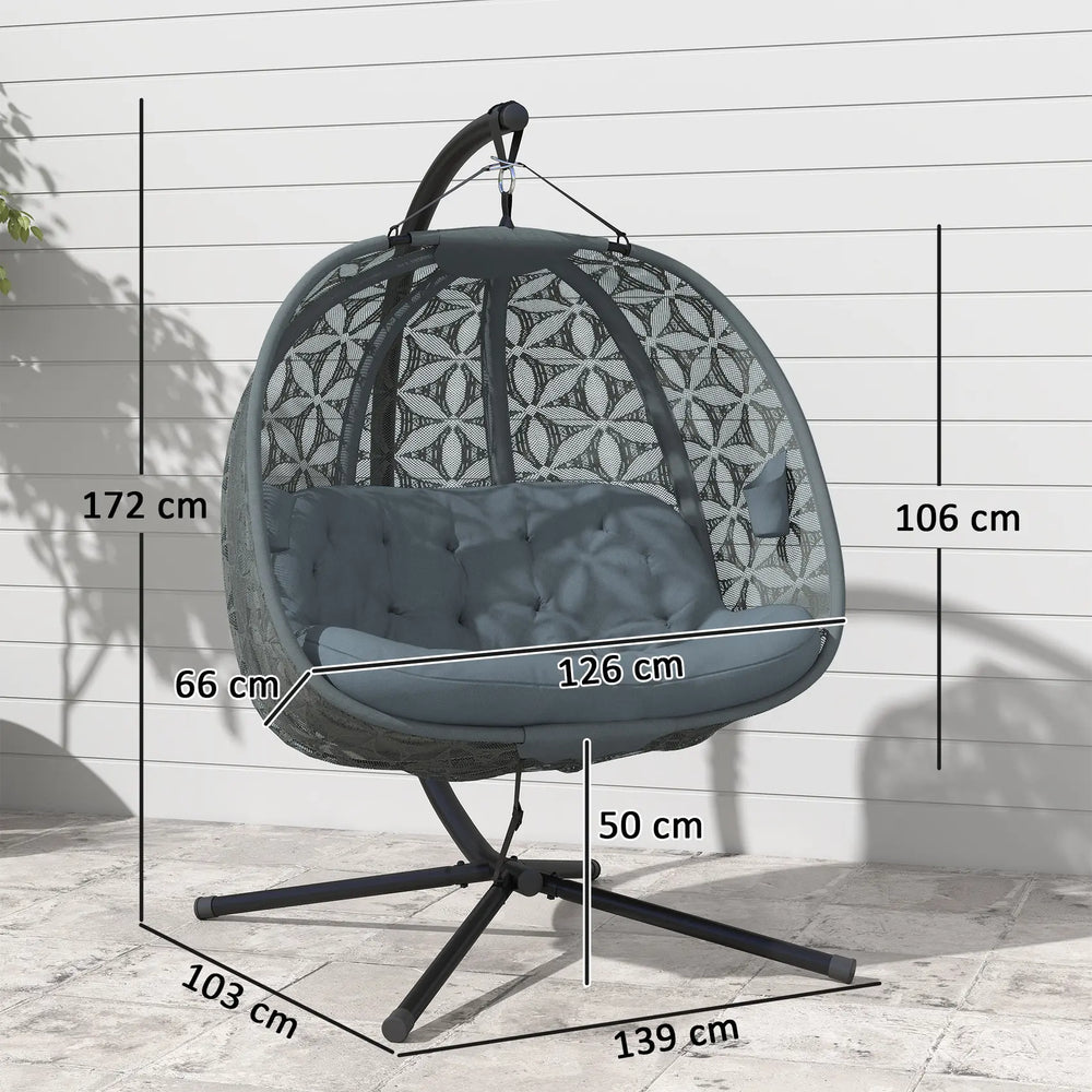 - Two-seater size: Large, extra generous double egg chair size means you can relax hidden away with a friend, or stretch out by yourself. Great for small and large gardens, balconies, outdoor porches - even some indoor spaces too.