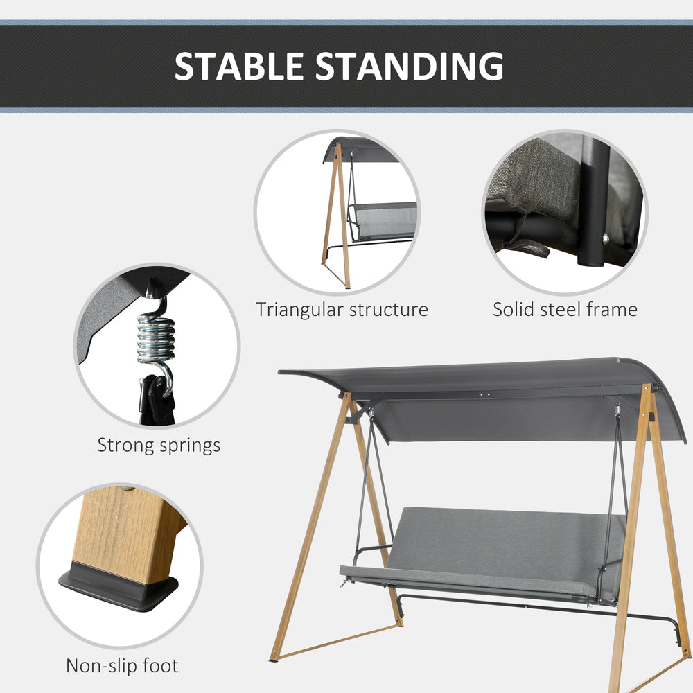 Outsunny 3 Seater Swing Chair, Garden Swing Bench with Adjustable Canopy, Cushioned Seat and Weather Resistant Steel Frame for Patio, Yard