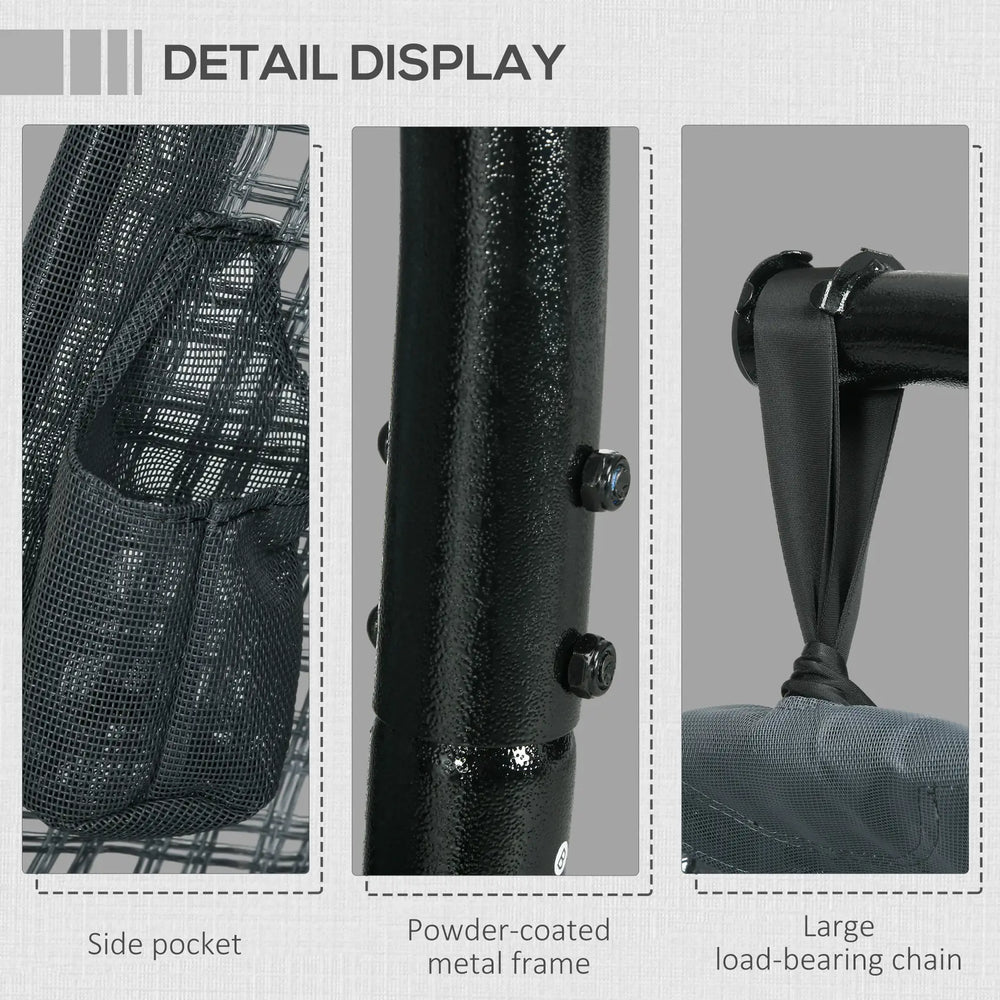 Outsunny Outdoor Swing Chair with Thick Padded Cushion, Patio Hanging Chair with Metal Stand, Egg Chair with Foldable Basket, Cup Holder, for Indoor and Outdoor, Dark Grey