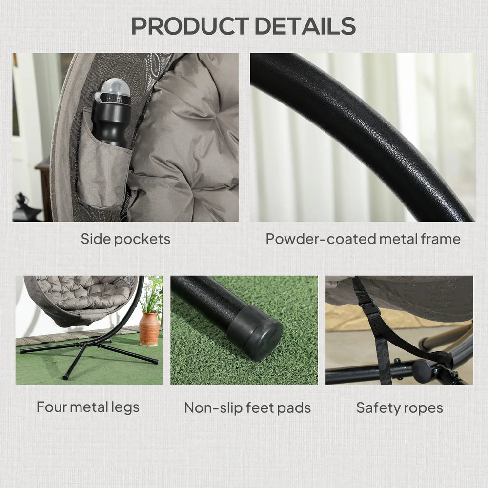 Outsunny Round Egg Basket Chair, with Steel Stand, Sand
