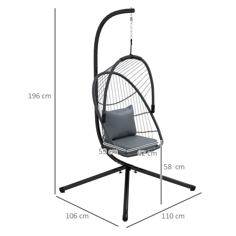 Outsunny Single Egg Chair, with Steel Frame Stand - Grey