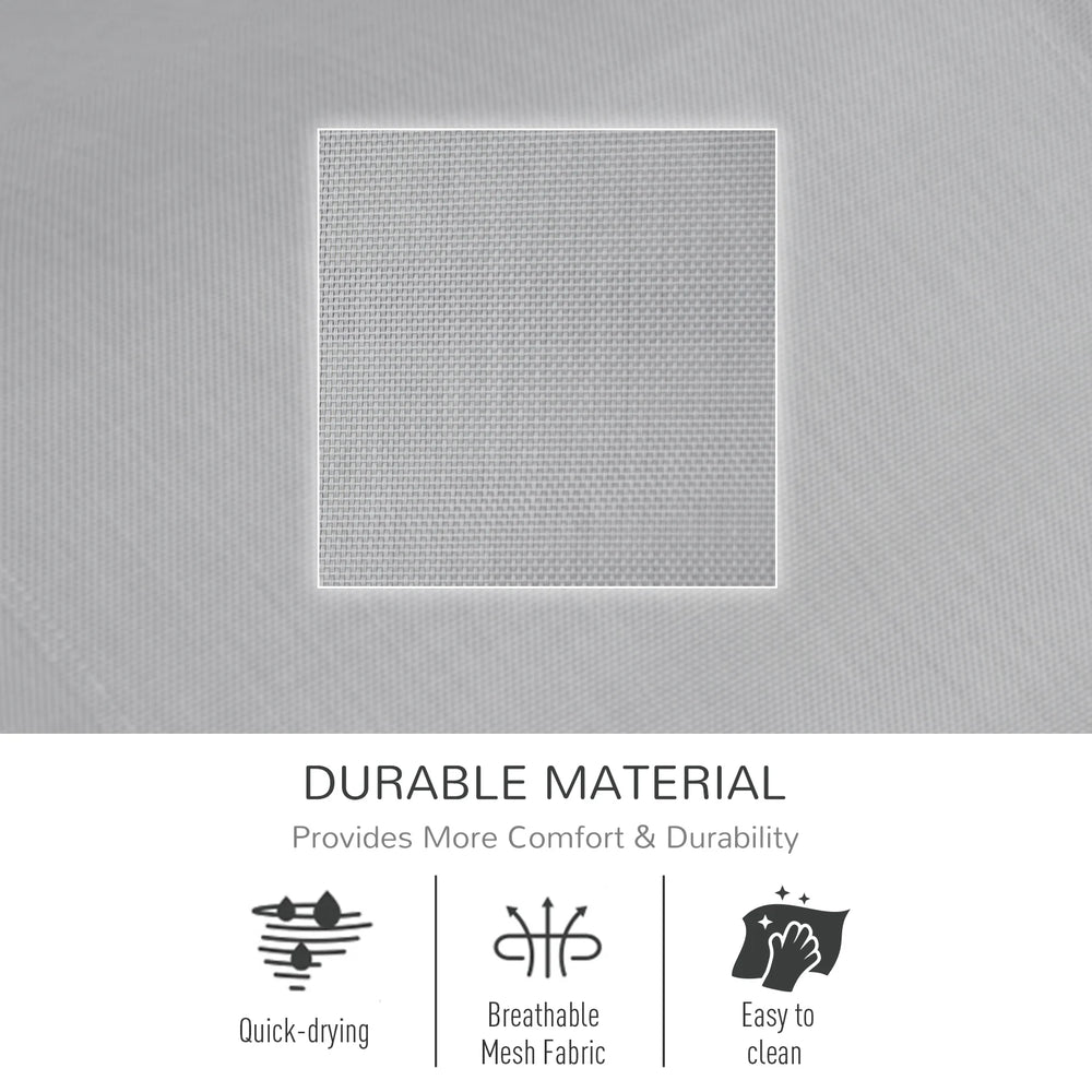 This outdoor rocking chair from Outsunny is a great way to relax outdoors. The curved frame has been made with your body comfort in mind, hugging to the contour of its shape. The seat is wrapped in mesh fabric which holds yours body in place, with a removable top pillow for head and neck comfort. Our patio rocking chair is finished with a removable side pocket, keeping everything you need next to you and rubber pads on the metal frame for protection.