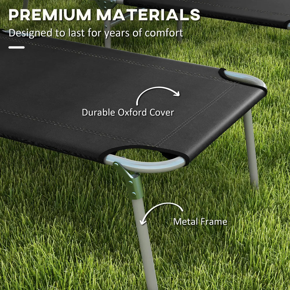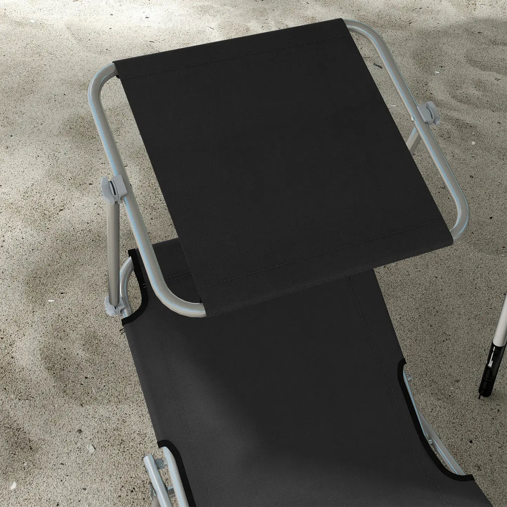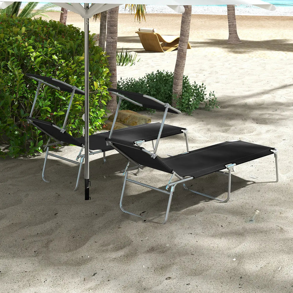 Outsunny Foldable Sun Lounger Set of 2 with Sun Shade & Adjustable Backrest - Black