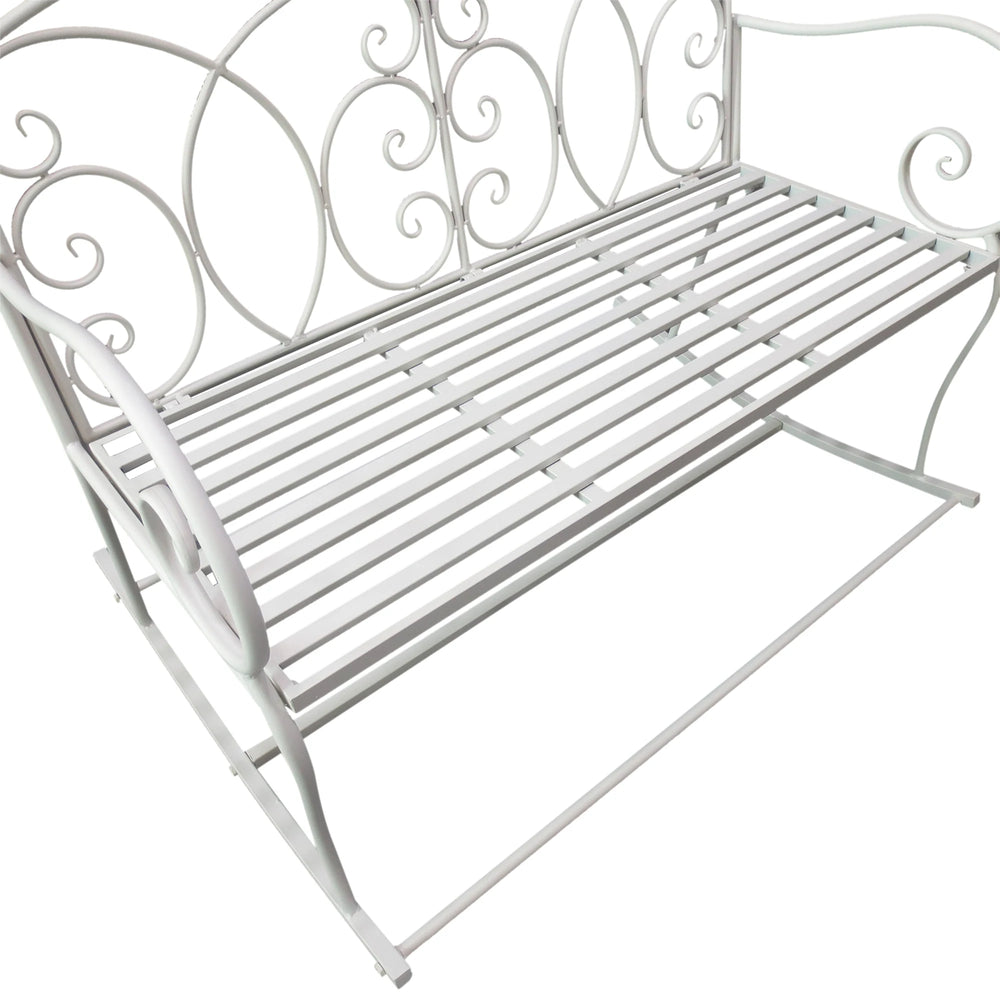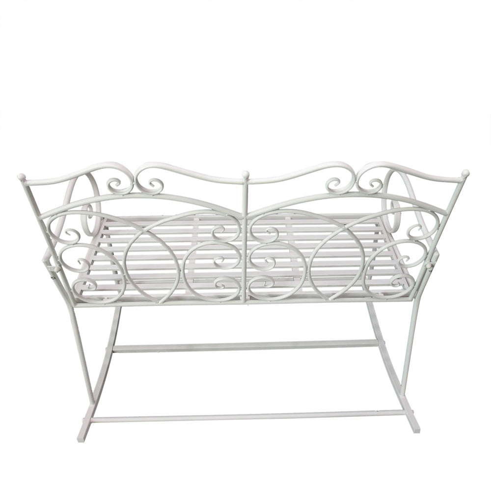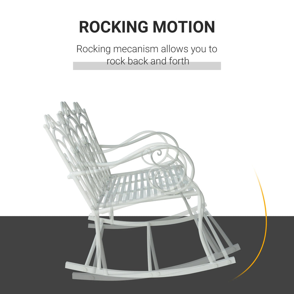 Outsunny Patio 2 Seater Rocking Bench Steel Garden Outdoor Garden Loveseat Chair w/ Decorative Backrest White