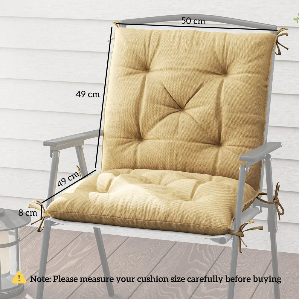 Refresh your single-seat chairs with these two replacement cushions from Outsunny. Each have a polyester fabric cover: smooth on the skin, durable and stain resistant - they're easy to care for. Plush cotton filling for comfort. The seat and back combined design keeps your upper and lower body comfortable. Completed with tie fastenings to hold into place.