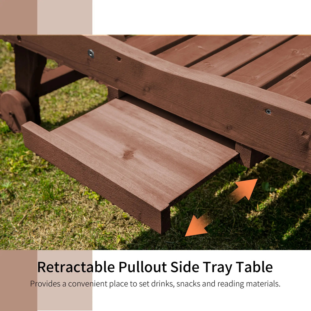 Outsunny Outdoor Wooden Lounger Chair, Sun Bed with Built-In Table, Adjustable Backrest and Wheels, Red Brown
