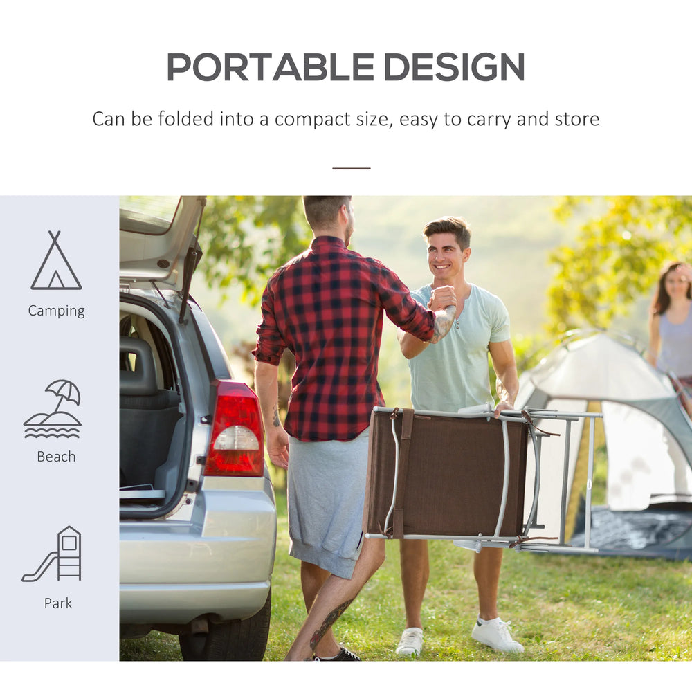 Outsunny Sun Lounger Steel Frame Outdoor Folding Chaise Texteline Lounge Chair Recliner with Headrest & 7 Levels Adjustable Backrest, Brown