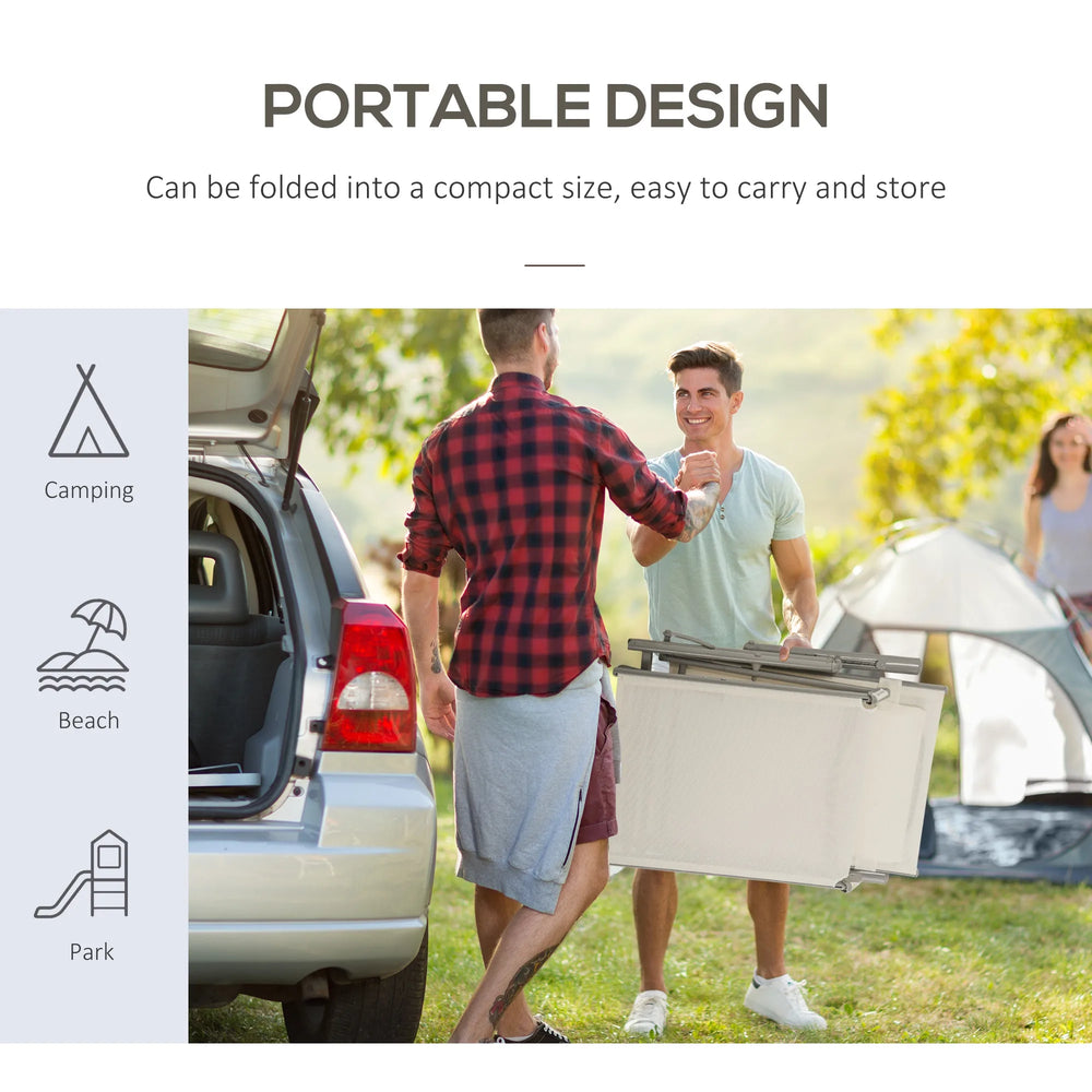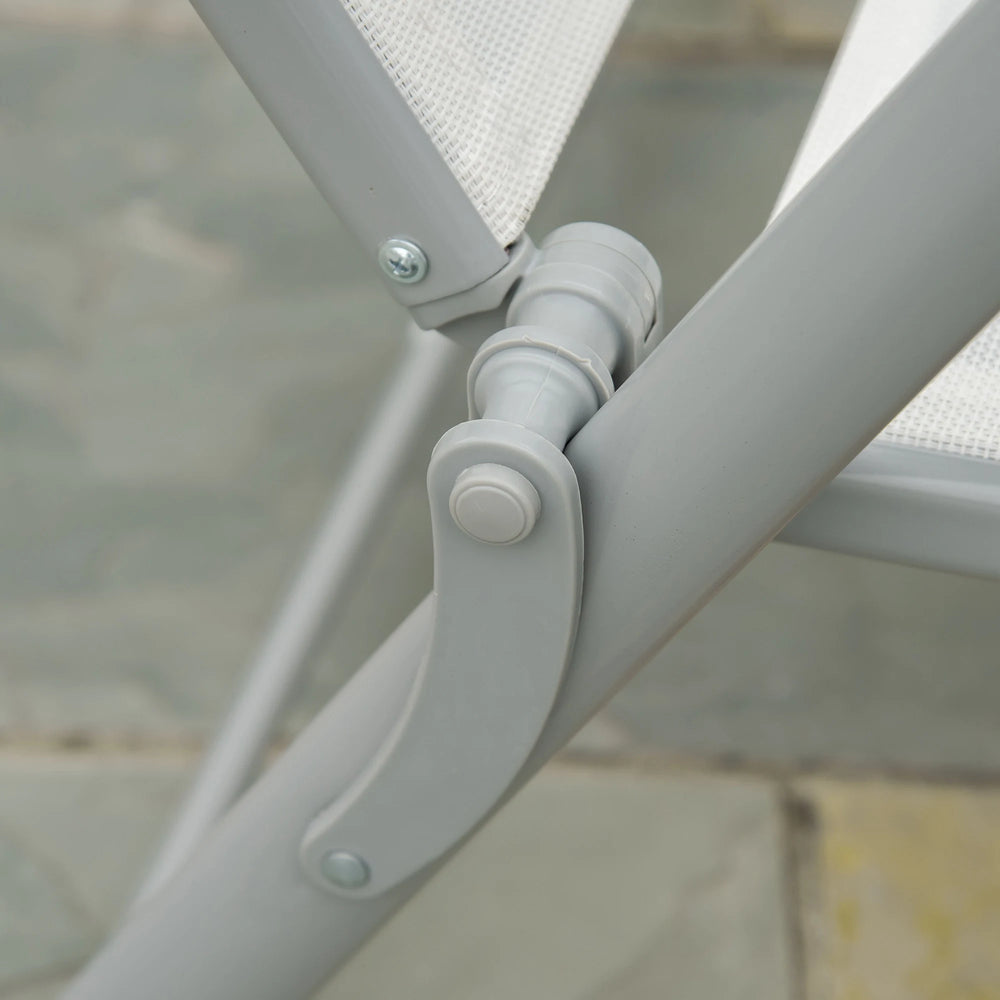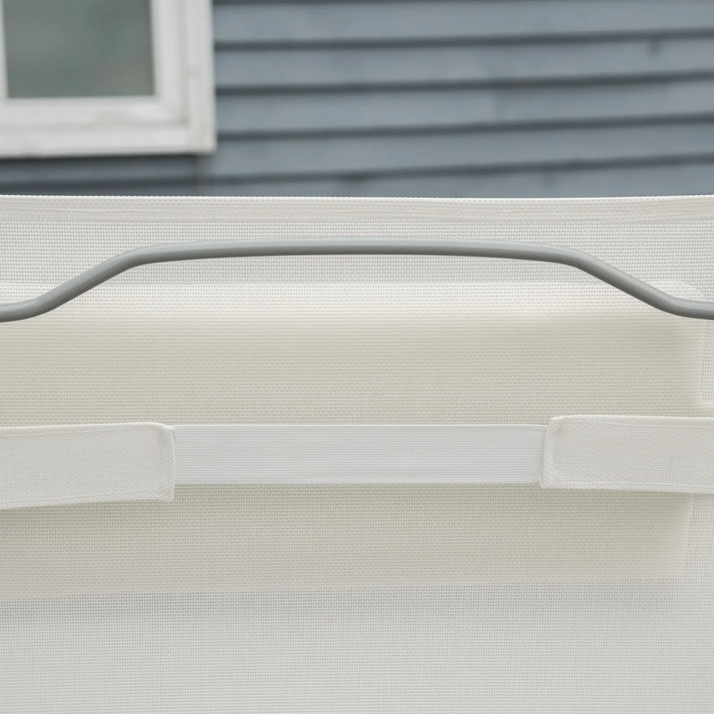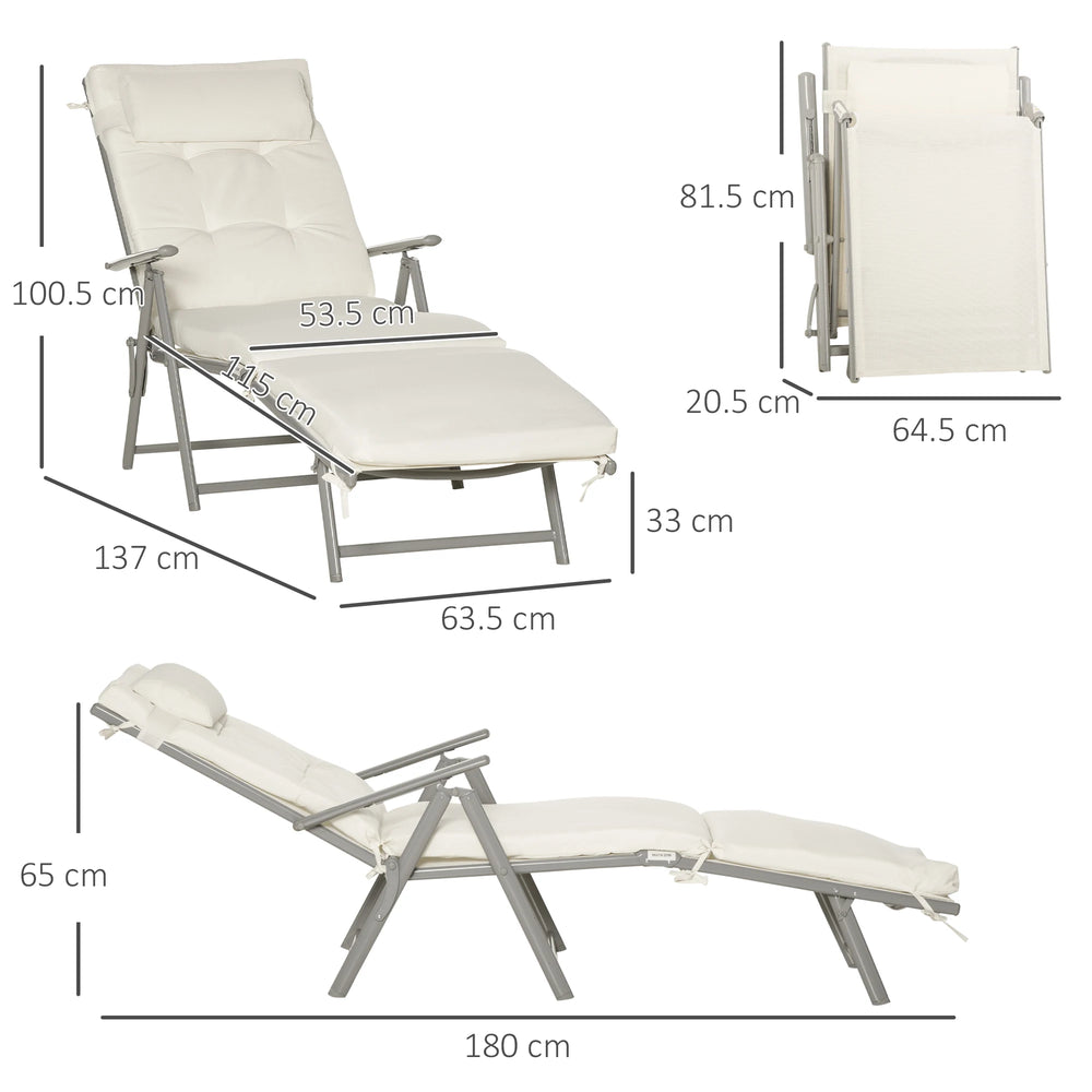 Outsunny Sun Lounger Steel Frame Outdoor Folding Chaise Texteline Lounge Chair Recliner with Headrest & 7 Levels Adjustable Backrest, Cream White