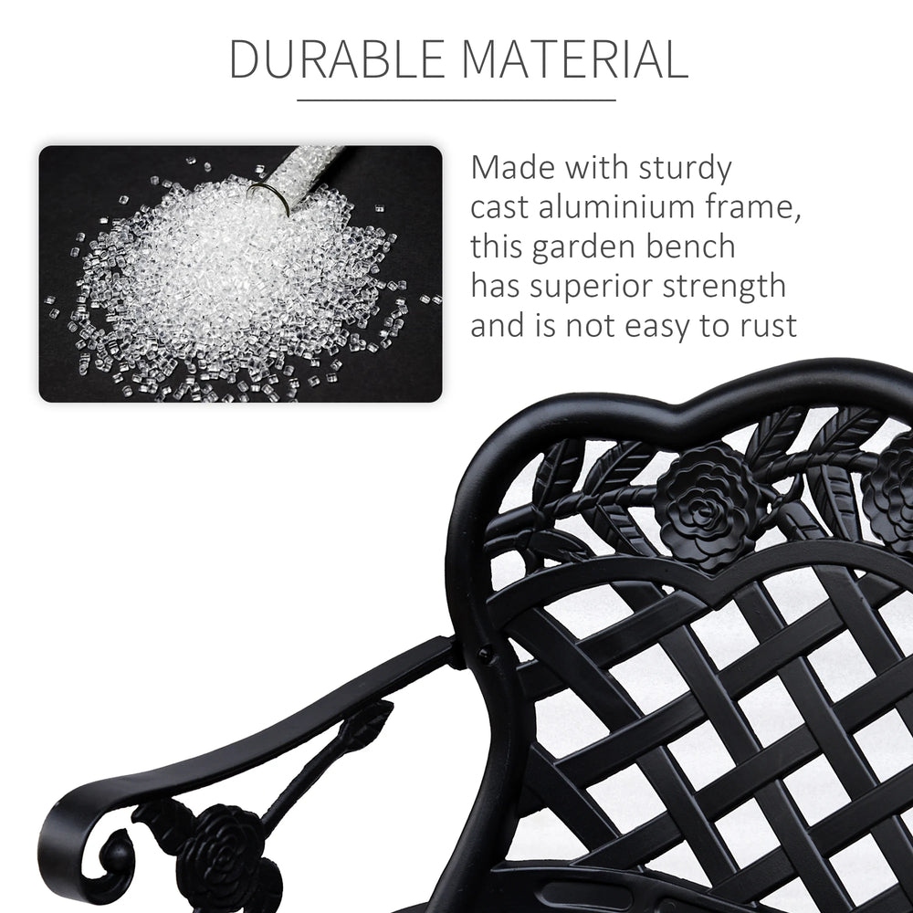 Outsunny Garden Bench, Cast Aluminium, 107Lx58Wx85H cm-Black